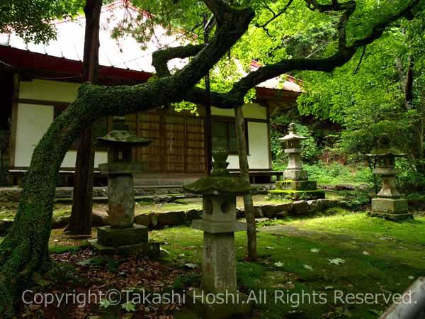お堂の前には、カタチの異なる石燈籠がいくつも建てられており、これが苔に映えとても印象的だ。これにより美しさが増している感じだ。