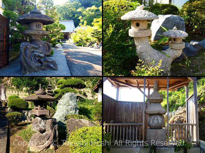静岡県下最古の1302年建立の五輪塔や宝篋印塔などがある他、ユニークな燈籠がいくつもあるよ!