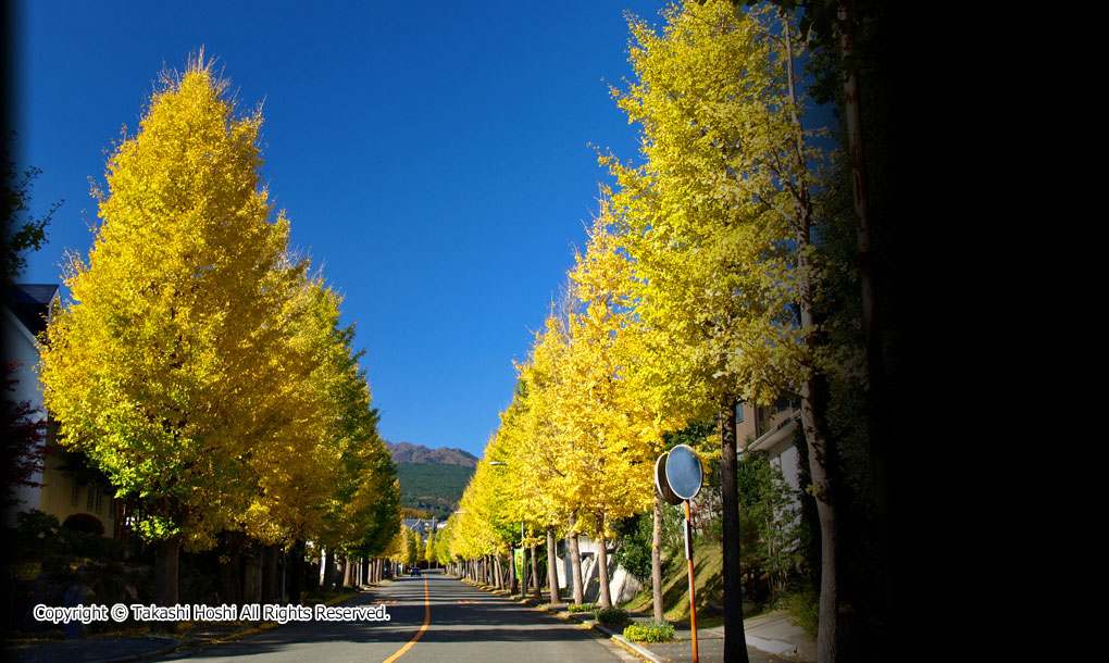 長泉町の市街地を南北に走る城山通りをずーっと道なりに北上し、国道246号・伊豆縦貫自動車道・東名高速・新東高速を高架で越えた先に広がる、508区画 934,000㎡のスルガ平分譲地にあるイチョウ並木。分譲地を突き抜けるメインストリートとなる駿河平大通りの両側に、約2.4kmに渡ってイチョウが植えられているよ!