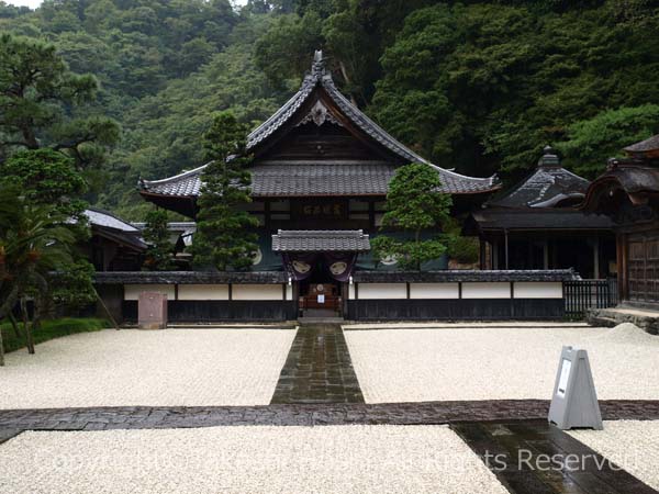 手入れの行き届いた石庭をはじめ、敷石やほうきの置き方ひとつにまで、随所に禅の心が垣間見える。『規矩整然』と言う言葉を初めてここで知った。入母屋造 桟瓦葺きで袴腰の鐘楼も美しい。奥に見えるのは禅堂。