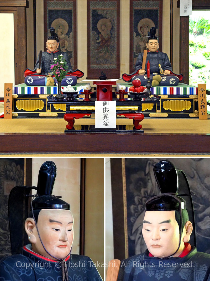 左が"海道一の弓取り"と称された第11代当主の今川義元公で、右が24歳の若さで急逝した兄の第10代当主の氏輝公だ。父の氏親公の木像はと言うと、少し離れるが同じ静岡市内の「増善寺」にある。等身大の木像は実にリアルだ!
